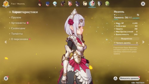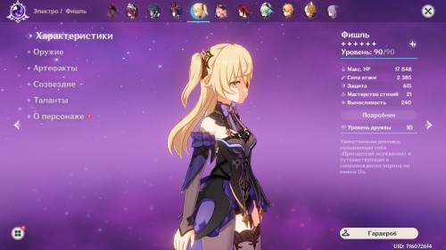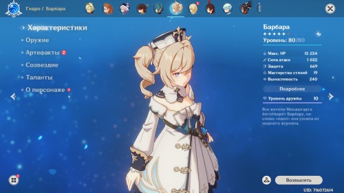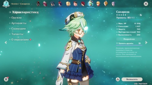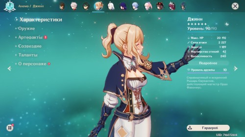 Молодая девушка-астролог, поселившаяся в Мондштадте и постоянно страдающая от нехватки моры. Независимо от наряда, объем бюста у нее не меняется.