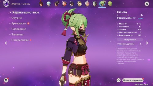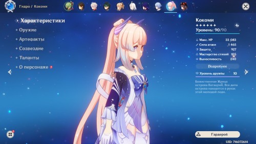 Наследная дочь клана Камисато, красота которой сравнима только с ее непревзойденной мудростью и силой. Датамайнерам не удалось получить точные мерки из-за огромного количества аксессуаров, надетых на модель тела.