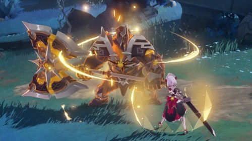 - Рыцарь Черного Змея: Крушащая камни секира – в прошлом являлся высокопоставленным гвардейцем, который может контролировать силу Гео. Попав по герою со щитом, он становится яростнее и сильнее, но у него тратится здоровье. Он точно появится в новом задании Архонтов.