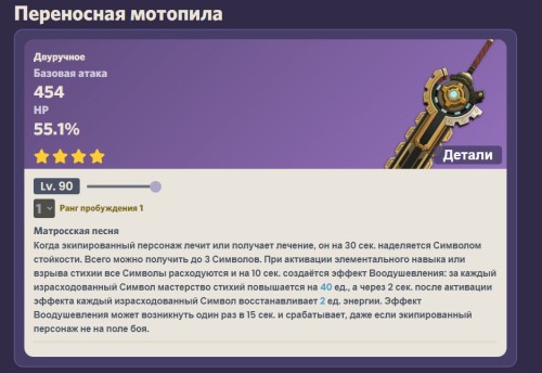 Студия собирается добавить новую линейку 4-звездочного оружия из Фонтейна. Отдельные ее экземпляры уже можно было увидеть в прошлых утечках – их характерной чертой является лампочка, которая горит разным цветом в зависимости от того, какой энергией пневмусии обладает персонаж. С их характеристиками можно ознакомиться на картинках ниже (они могут измениться ближе к релизу патча).
