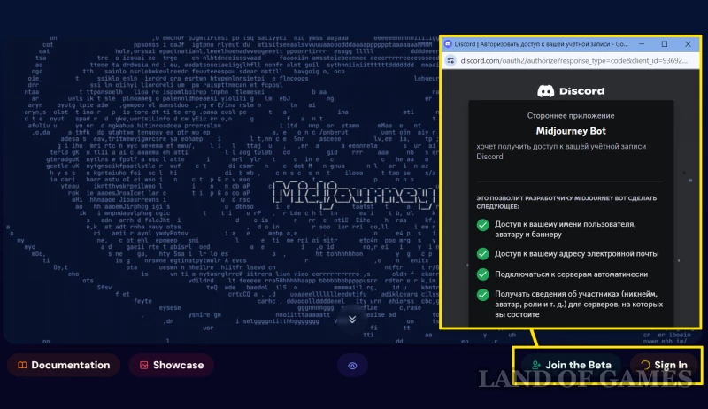 На главной странице Midjourney вы можете войти в уже существующую учетную запись, или присоединиться к серверу Discord (т.е пройти регистрацию с нуля). В любом случае, вас перекинет на информационный канал в Discord.