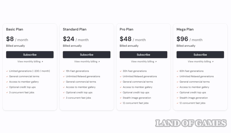 Как уже упоминалось ранее, для использования Midjourney требуется подписка: войдите на страницу своего аккаунта (первый скриншот сверху), а затем выберите в личном кабинете подходящий для вас план.