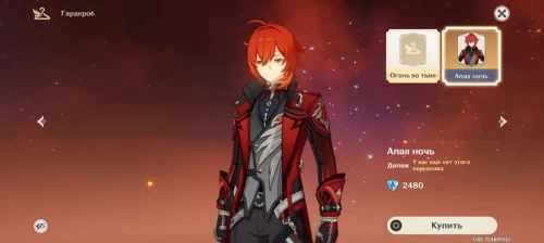 Единственный на данный момент легендарный скин. Он преобразует костюм и прическу Дилюка: у мужчины появляется высокий хвост и красный пиджак, а также много серых элементов, которые напомнили игрокам об Арлекино и организации Фатуи в целом. Что интересно, в этом костюме глаз бога Дилюка не виден. Наконец, особенностью этого скина являются уникальные анимации и реплики.