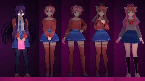 - Doki Doki Literature Club – пак модов, позволяющий превратить Миту в персонажей новеллы Doki Doki Literature Club: Саери, Юри, Нацуки и, конечно же, Монику. Есть два варианта редизайна: полный и только волосы и лицо.