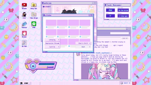 Needy Streamer Overload – это история девушки-стримера, которая мечтает о популярности, но сталкивается с эмоциональным выгоранием и психологическими проблемами. Игрок должен балансировать между развитием ее карьеры и ее ментальным состоянием, пытаясь удержать ее от срыва. Атмосфера тревоги, нестабильность главной героини, а также множество концовок делают игру близкой по духу к Miside.