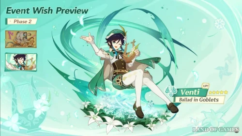 Что касается оружейного баннера, то в нем будет представлено сигнатурное оружие Шилонен и Венти: одноручный меч Песнь патруля пиков и лук Элегия погибели.