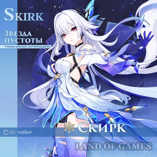 Скирк – таинственная фигура, окутанная легендами и полунамеками. О ней известно немного: она – наставница Тартальи и ученица некоего «Грешника». Эти две грани биографии связывают ее одновременно с Фатуи и с более древними, возможно каэнри'ахскими, источниками силы. Скирк одна из немногих, кто пережил катастрофу древней цивилизации и смогла вырваться из оков, наложенных судьбой. Согласно пророчеству Каэнри'аха, ее путь – смелое движение навстречу неизведанному, между звездами и Бездной. Судя по предварительным данным, в команде она сможет играть роль основного дамагера.