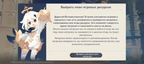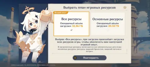 После загрузки лаунчера игра предлагает загрузить все данные (36.97 ГБ) или только основные ресурсы (20.53 ГБ).