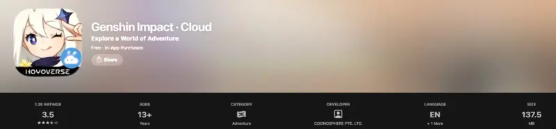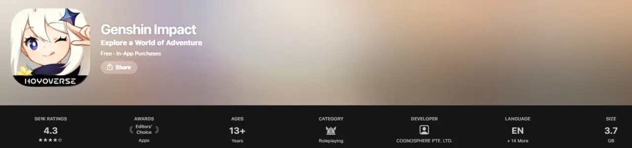 Чтобы скачать Genshin Impact из App Store, понадобится всего 3.7 ГБ.