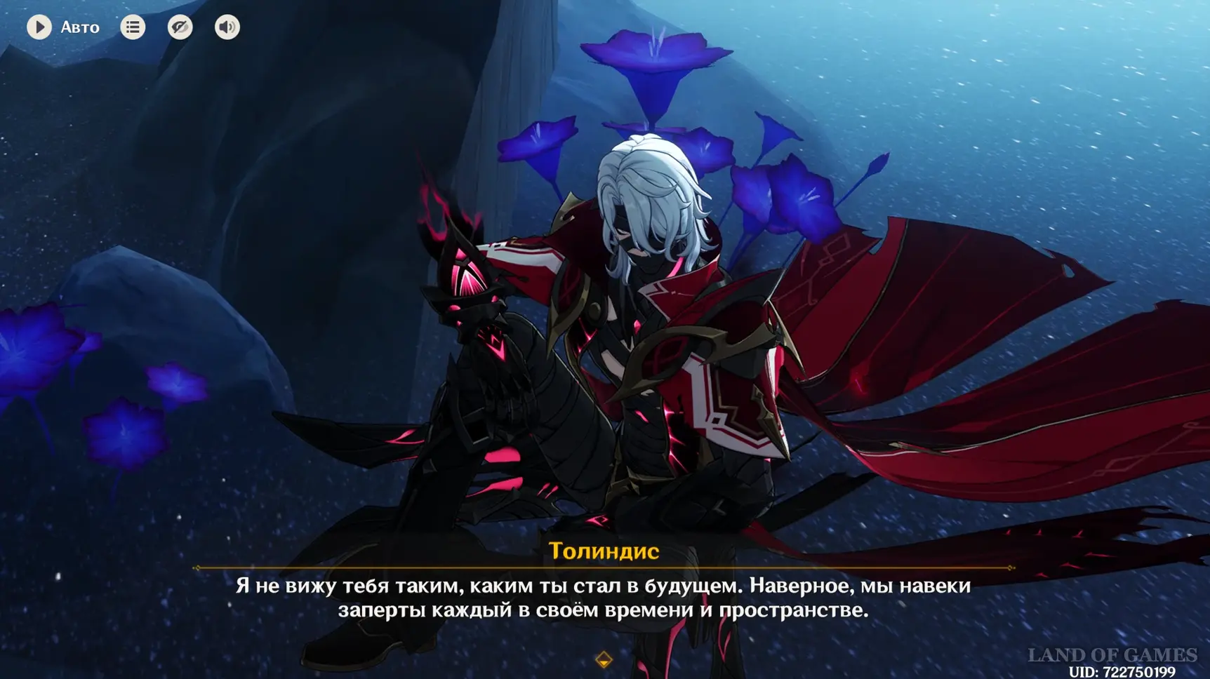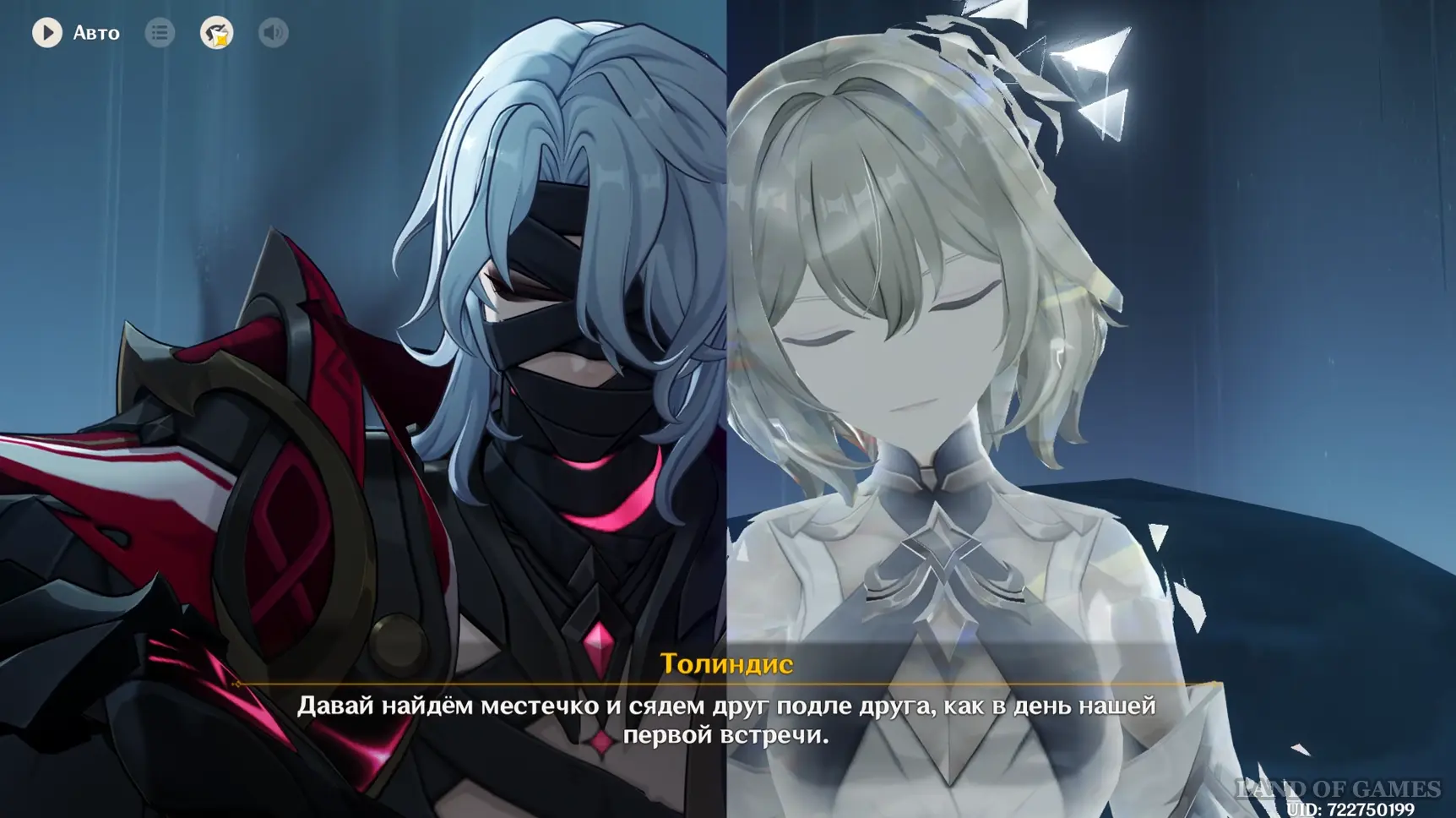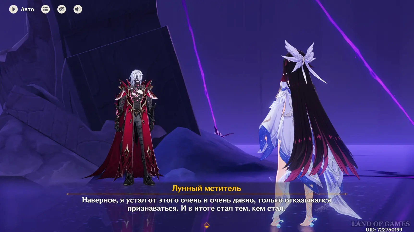 Используя навыки перевоплощения, Рери притворялся Близнецом и намеревался обмануть Путешественника, чтобы завладеть реликвией Клана Морозной Луны (божественным ядром Арии, одной из трех павших Лунных богинь). Он также принимал облик Флинса, чтобы обострить страхи жителей Нашгорода и подтолкнуть их к активации пушки Айно, заряженной лунной энергией. В сюжете патча 6.0 мы напрямую сталкиваемся с ним несколько раз: