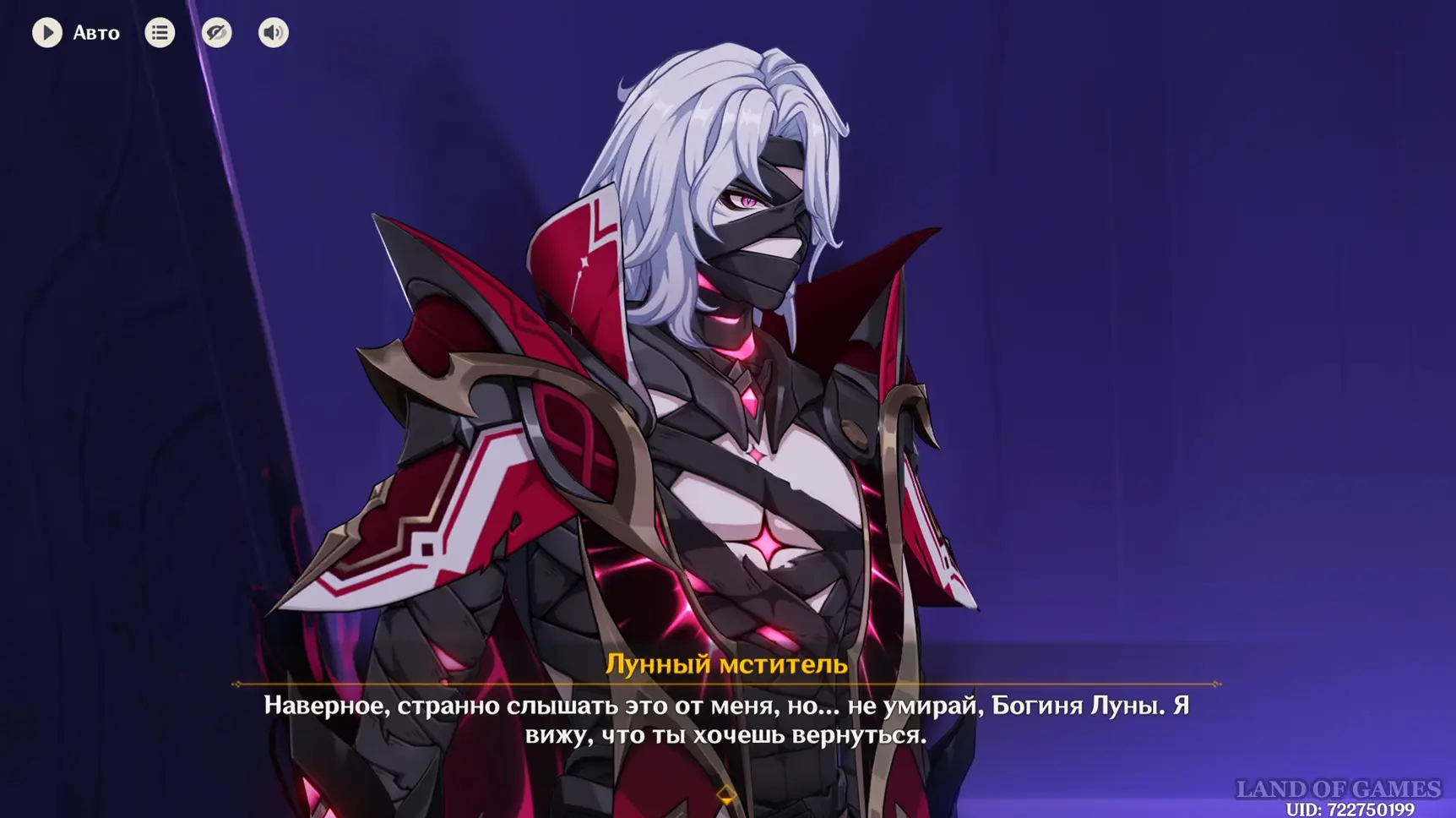 Во время разговора он раскрывает правду своего воскрешения, связанную с грандиозным планом Доктора. Затем Рери, не способный свободно передвигаться по отражению луны, просит Коломбину передать духу своей возлюбленной правду о прошлом — о собственных ошибках и о том, что произошло после. Какую именно истину открыть, Богиня может решить сама. Взамен Мститель расчистит путь сквозь препятствие Бездны, хоть и готов сделать это безвозмездно.
