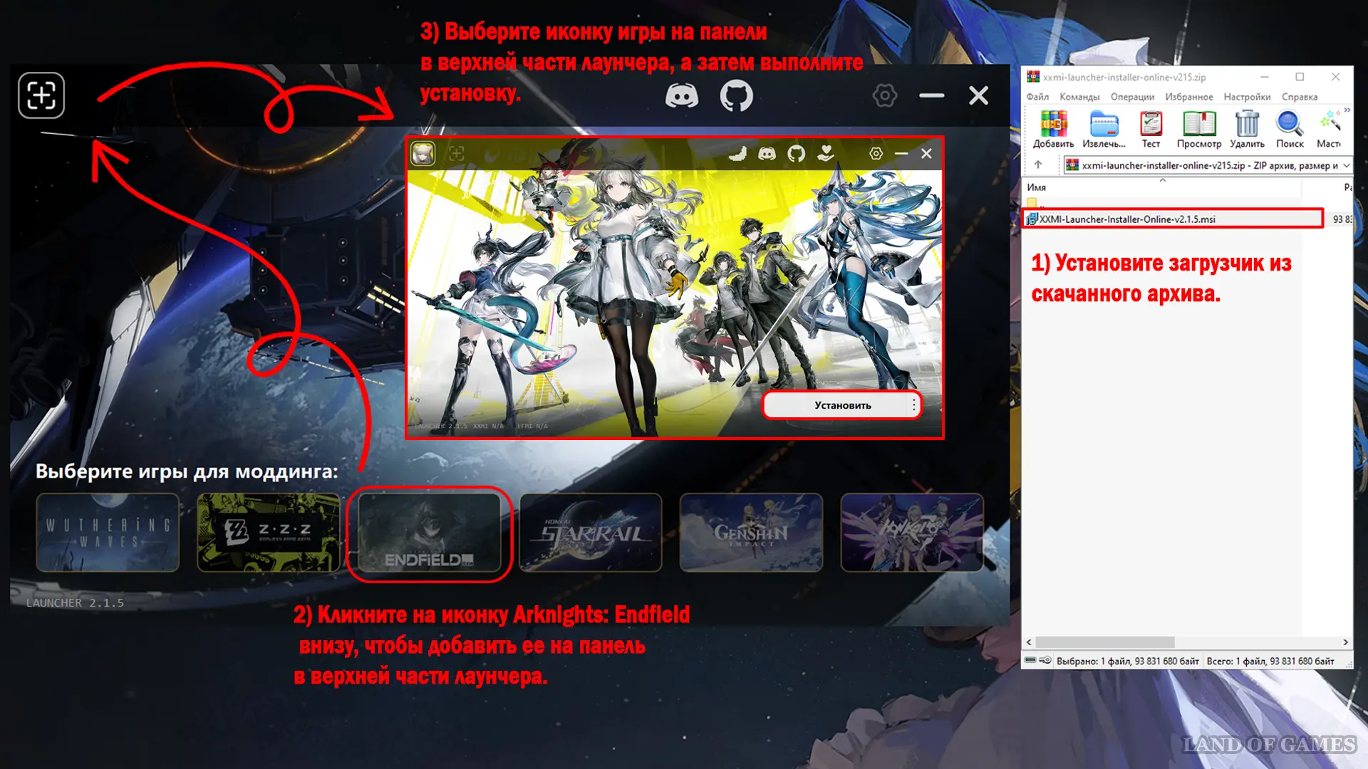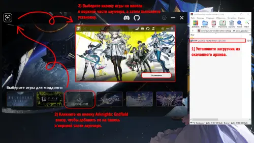 - Откройте установленный XXMI Launcher (он появится на рабочем столе). В списке игр для моддинга выберите Arknights: Endfield, чтобы добавить его иконку на панель в верхней части лаунчера;