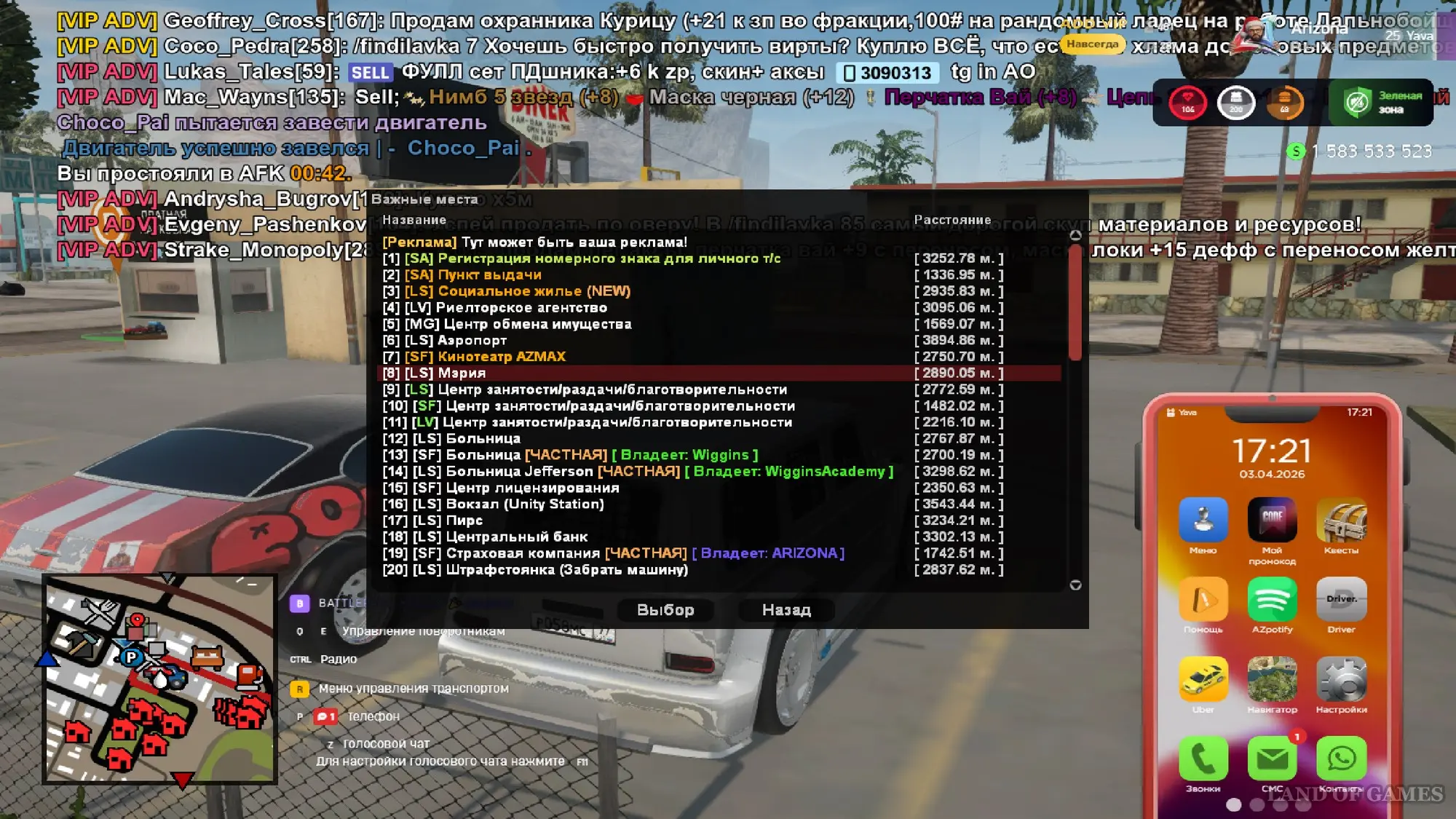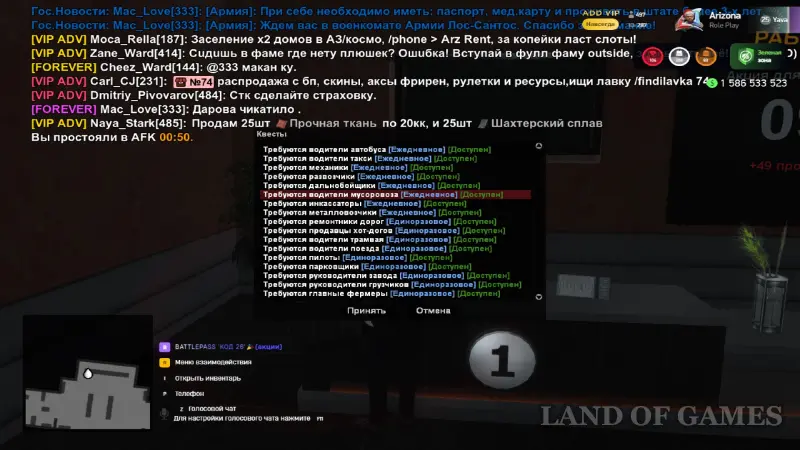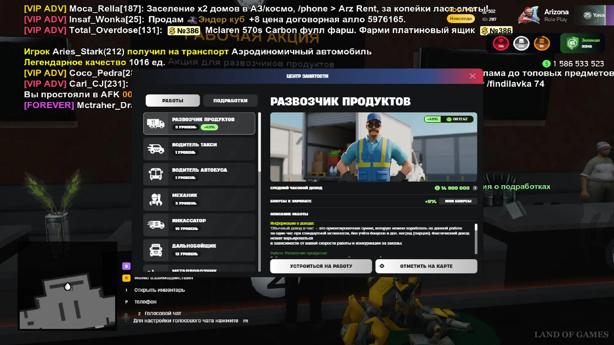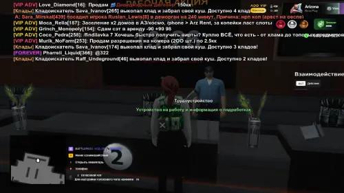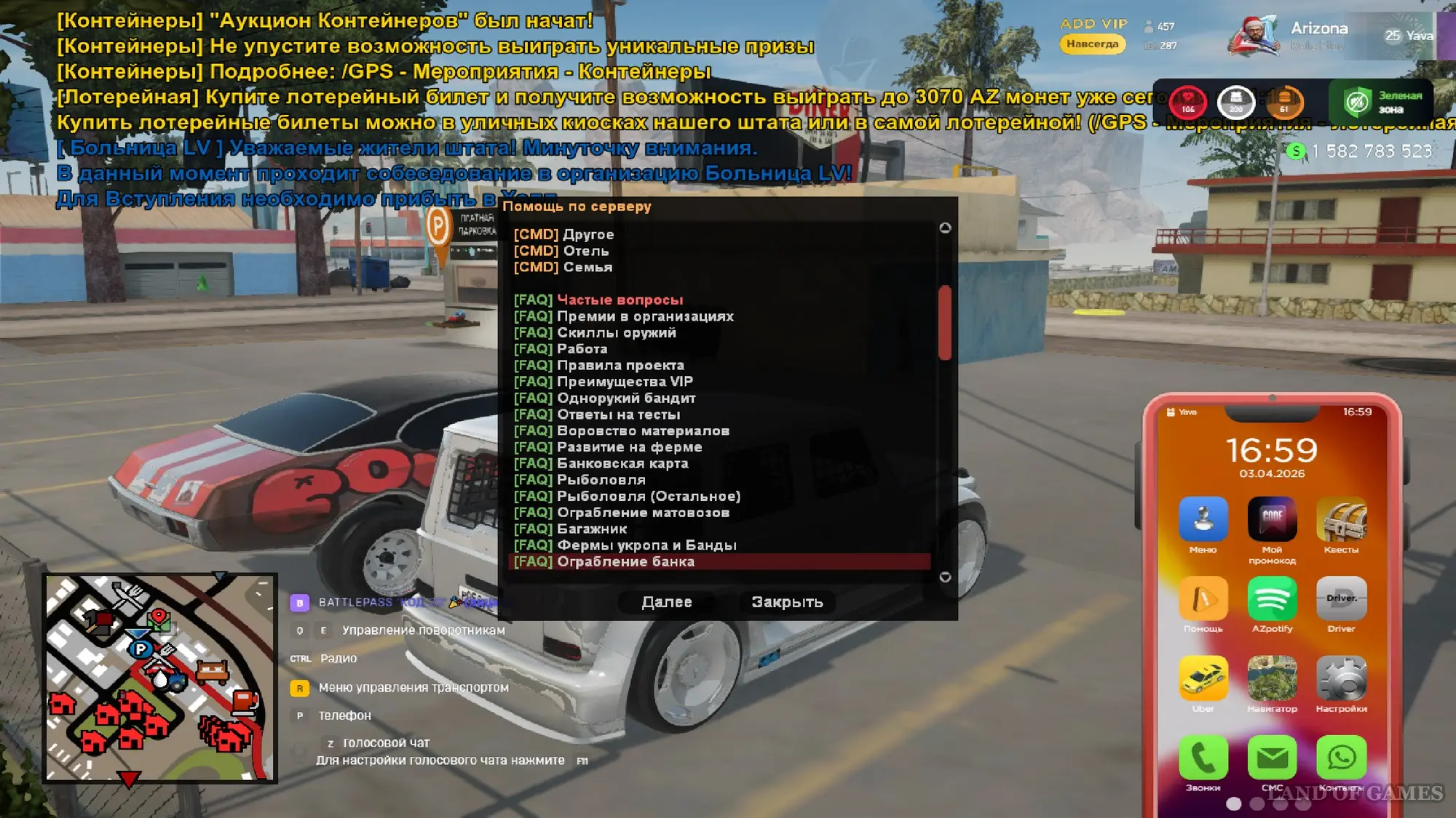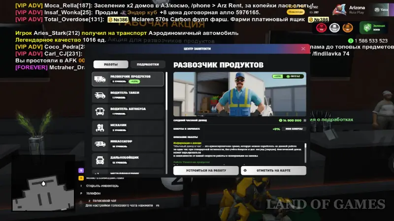 Экономика в Аризона Онлайн – одна из самых проработанных среди RP-серверов. Игроки могут приобретать различные бизнесы: магазины, АЗС, предприятия, автомастерские и даже банки. Каждый бизнес генерирует доход, но требует управления – настройки цен, закупки товаров, анализа конкуренции. Все это можно осуществлять через свой телефон в отдельном меню.