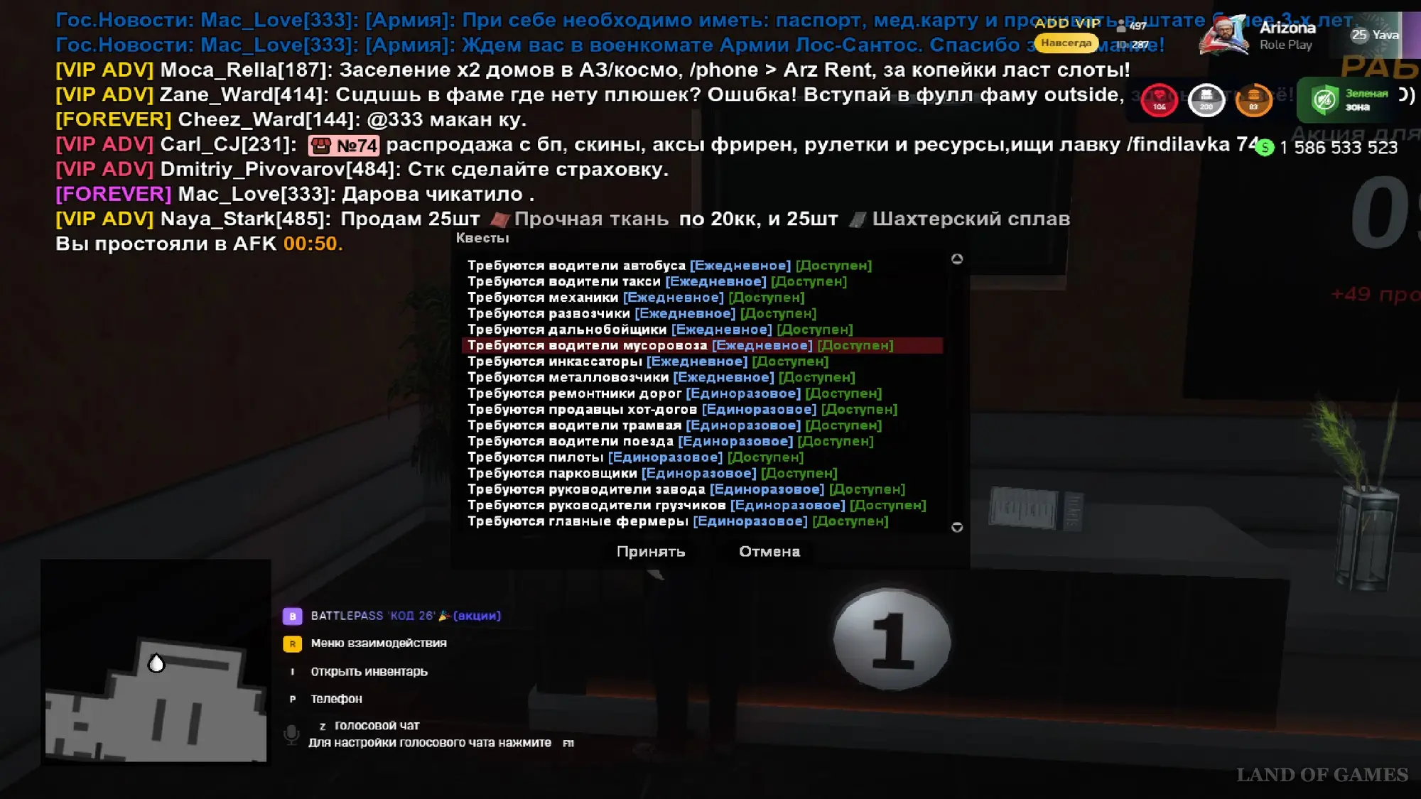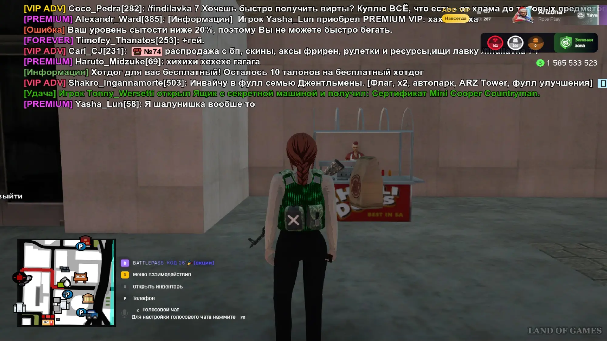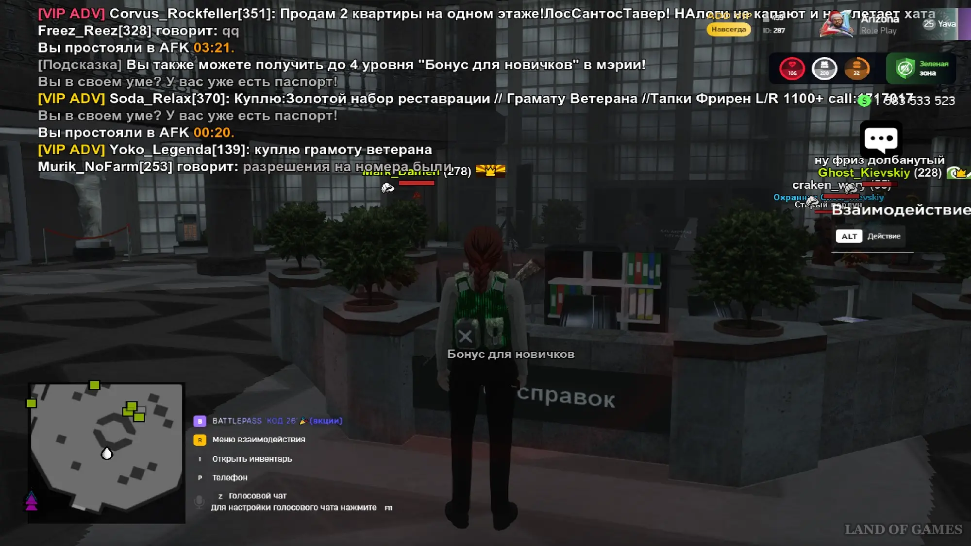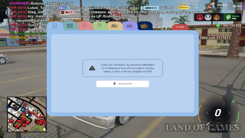 Еще на минутку отвлечем ваше внимание и укажем, что благодаря сотрудничеству с авторами Arizona RP нам удалось договориться о выдаче уникального промокода для всех читателей нашего портала. В меню телефона нажмите на кнопку «Мой промокод», а затем введите в текстовое поле слово LAND, чтобы получить в награду: