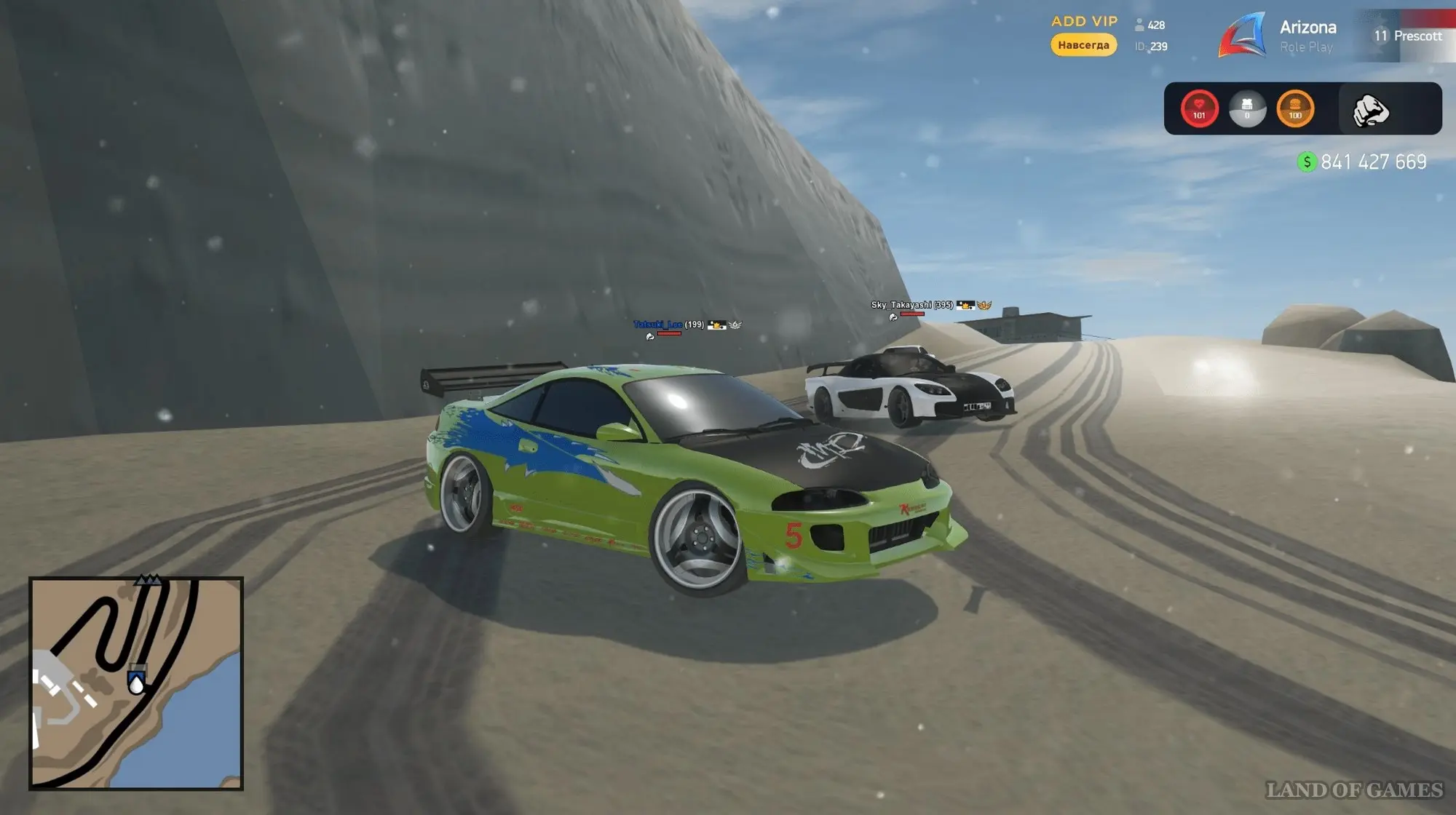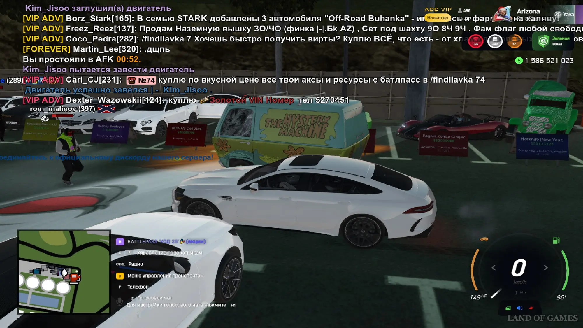 Как мы уже отметили выше, автомобили – ключевой элемент игрового процесса. В Аризона Онлайн представлен широкий выбор транспорта: от бюджетных моделей российского производства до супердорогих гиперкаров или уникальных редких машин. К примеру, мы увидели на дорогах даже знаменитый минивэн корпорации «Тайна» из мультсериала «Скуби-Ду».