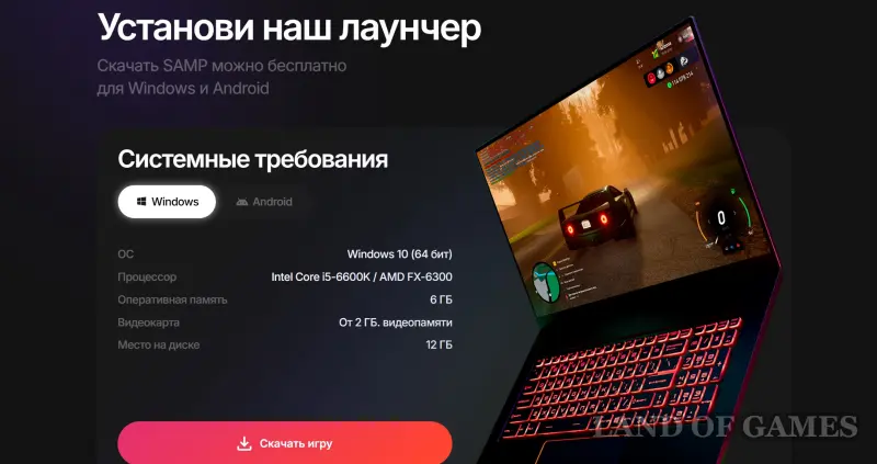 Здесь все максимально легко и понятно. Первым делом зайдите на официальный сайт проекта arzgame.online и установите лаунчер, выбрав нужную вам платформу: Windows (ПК) или Android (мобильные устройства). На странице, кстати, указаны минимальные системные требования для базовой версии игры. Обязательно удостоверьтесь, что у вас достаточно свободного места на компьютере или телефоне, чтобы загрузка прошла без проблем.