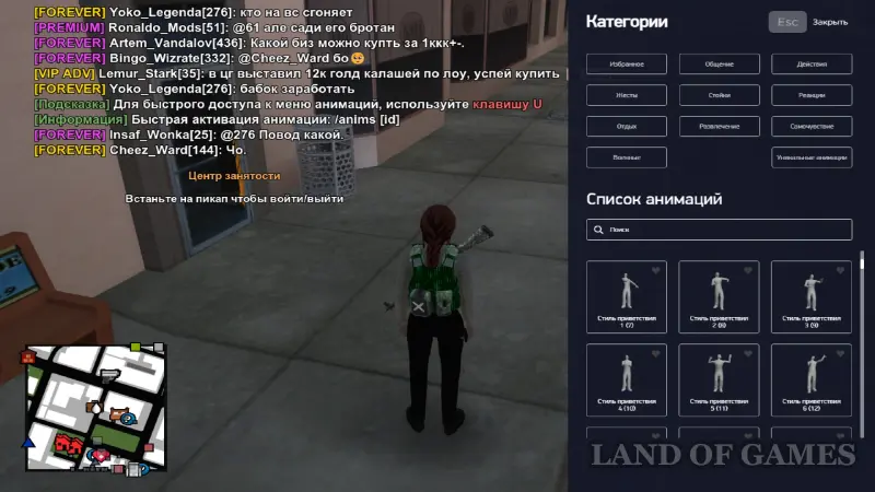 Для общения с другими игроками вы можете использовать как внутриигровой чат, который можно увидеть на верхней части экрана (для написания ответов нажмите «Т»), так и различные анимации взаимодействия, доступ к которым открывается путем нажатия клавиши «U» или из телефона. Однако не стоит верить всем на слово, ведь здесь, как и в реальной жизни, вас вполне могут обмануть или даже убить (к счастью, вы почти сразу же оказываетесь в местной больнице).