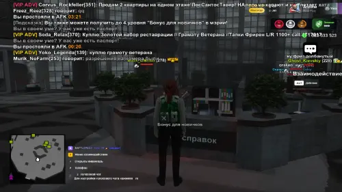 Примечание: Кстати, в фойе Мэрии зачастую можно встретить немало других игроков, среди которых есть как новички, так и настоящие старожилы. Советуем вам уже здесь обзавестись новыми знакомствами или просто попросить помощи у ветеранов. Они могут, как поделиться полезными советами, так и подвести вас до нужного места.