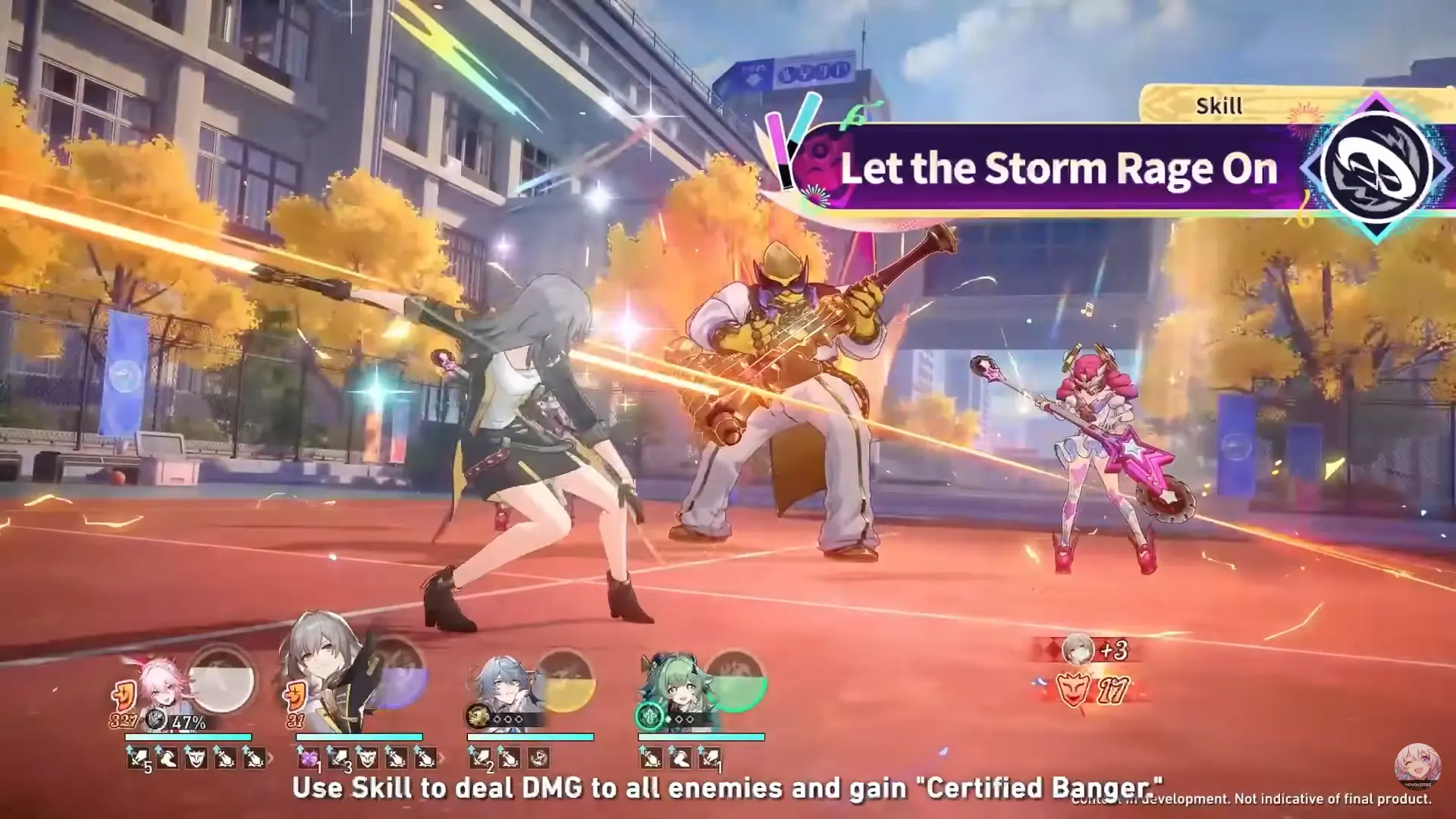 Ее стиль боя строится вокруг механики Настоящий хит. При накоплении достаточного количества энергии появляется ее помощник, наносящий урон по всем врагам. Она способна усиливаться по мере боя, а ее урон напрямую зависит от взаимодействия с союзниками, что делает ее ориентированной на командную игру.