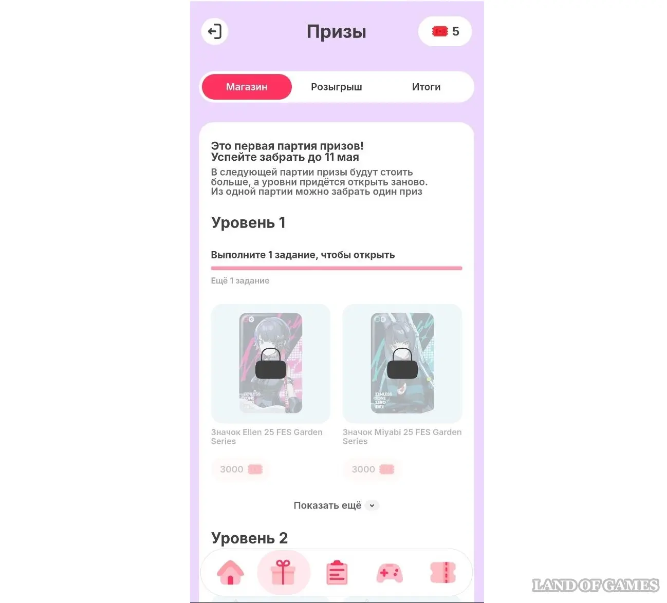 Потратить билетики можно в магазине события, покупая призы. В течение события будет 3 партии призов — с каждой партией их стоимость будет повышаться, а уровни нужно будет проходить заново.