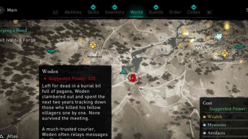 Сначала вам предстоит отыскать все Сокровища Британии. Их расположение показано на скриншотах ниже. Это сложные системы пещер, в которых вам предстоит много прыгать и карабкаться. Нужная награда будет дожидаться вас в конце пещеры. Используйте Взгляд Одина, чтобы найти сокровище.