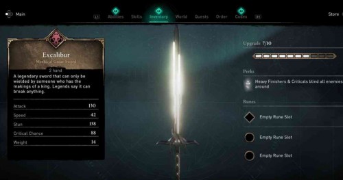 Отметим, что Эскалибур является одним из лучших мечей в игре. На скриншоте выше можно увидеть его характеристики.