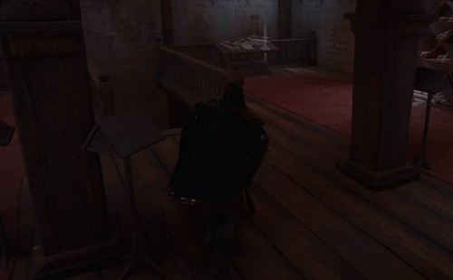 Теперь вернитесь в главную комнату старого собора и выйдите через северо-восточную дверь. Посмотрите наверх. Выстрелите в окно, показанное на скриншоте, и пролезьте через него. Далее просто откройте сундук.