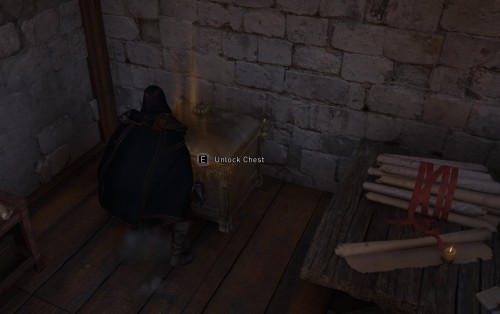 Далее войдите в дом через незапертую дверь, продемонстрированную на изображении. Сундук стоит слева, среди других сокровищ.