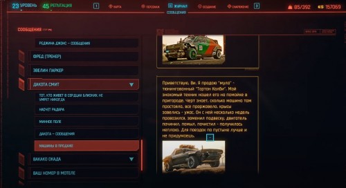 Во время исследования различных районов Найт-Сити вы будете получать СМС от различных местных дельцов или фиксеров. Посмотреть их можно в разделе «Журнал» -> «Сообщения». Затем выберите нужного персонажа и нажмите на вкладку «Машины в продаже». Вы увидите предлагаемые им транспортные средства.
