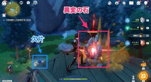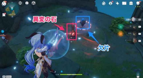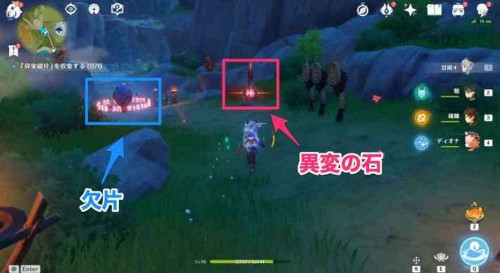 Переместитесь к точке быстрого путешествия на отмели Яогуан, а потом незаметно уничтожьте камень мутации, подойдя к нему со стороны, где нет хиличурлов. Далее постарайтесь первым делом разобраться с митачурлом с каменным щитом.