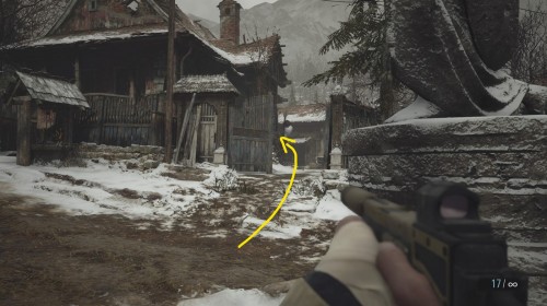 Продолжайте спускаться вниз по аллее, а потом сверните налево. Вскоре вы заметите металлическую калитку, для разблокирования которой понадобится Железный ключ с отметкой, ранее обнаруженный вами при осмотре замка Димитреску.