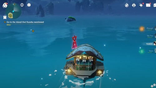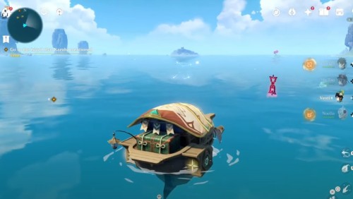Доберитесь на волноходе до отмеченной точки. Там вы обнаружите плавучую платформу с хиличурлами. Разберитесь со всеми врагами, чтобы убрать печать с сундучка.