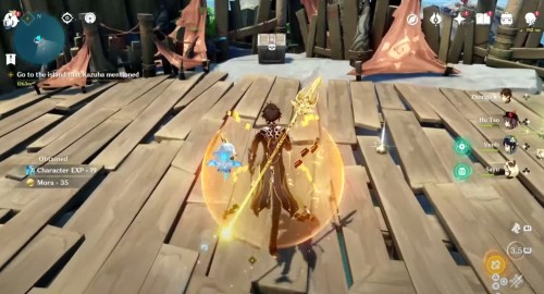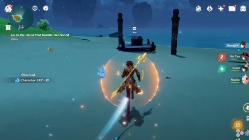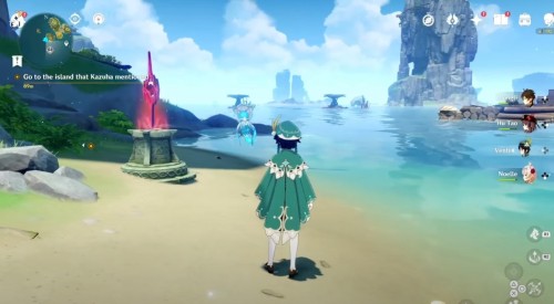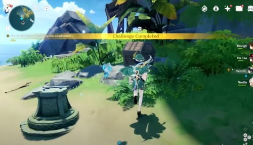 Доберитесь до маленького островка на волноходе. Там вы обнаружите вражескую группу из хиличурлов и митачурлов. Разберитесь со всеми противниками, чтобы убрать печать с богатого сундучка.