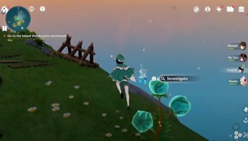 Отправляйтесь в указанную область. Здесь вы найдете хиличурлов и митачурла, а также Гидро и электро слаймов. Разобравшись с ними, вы получите доступ к богатому сундучку.