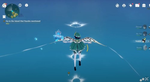 На вершине центральной горы островка отыщите парящий кристалл и подберите его. Впереди вы увидите ветряные кольца. Спланируйте к ним, а затем спуститесь на скальный участок, где вы обнаружите богатый сундучок.