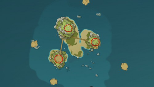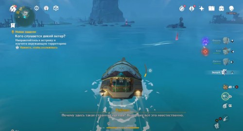 Плывите в северо-западную часть архипелага Золотого яблока к острову без названия, показанному на скриншотах ниже. В указанной области вы заметите странные течении на воде, а Паймон предложит вам изучить окружающую территорию.