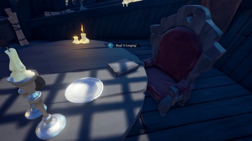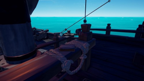 Найдя четвертый журнал, развернитесь и заберитесь внутрь затонувшего корабля. Идите наверх, пока не доберетесь до вершины. Справа от призрака на верхней палубе будет лежать последний дневник из данной коллекции.