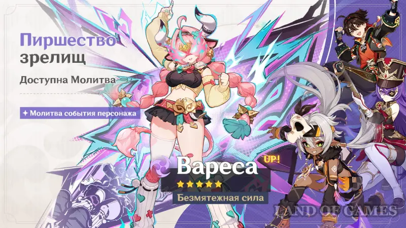 - 5-звездочные персонажи (повышенный шанс выпадения): Вареса (Электро, катализатор)