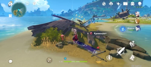 Вернитесь к телепорту, соберите один кровоцвет у деревянного корабля. Еще один цветок находится чуть севернее, рядом с группой врагов.