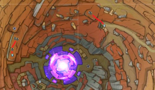 На поверхности карьера можно отыскать несколько кристальных бабочек Гео, причем некоторые из них находятся прямо возле телепортационных точек. Поэтому вы вполне можете отправиться в данную локацию для фарма кристальных ядер. На скриншотах ниже показано несколько мест их спавна.
