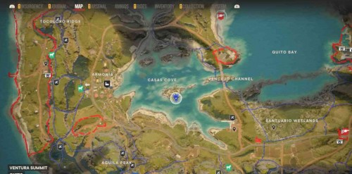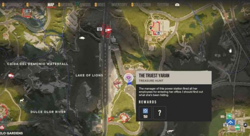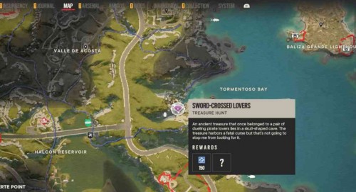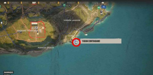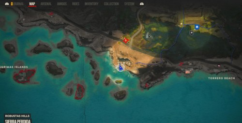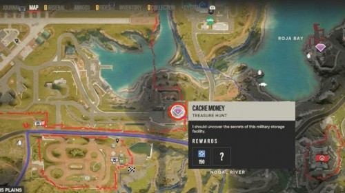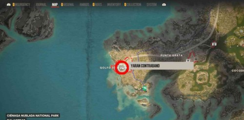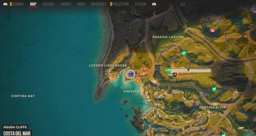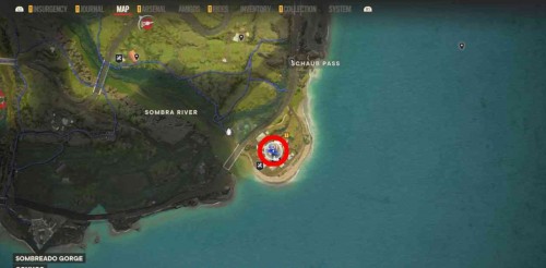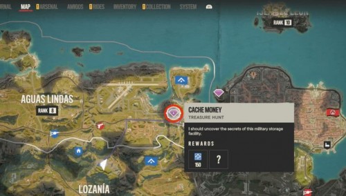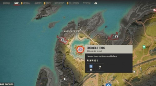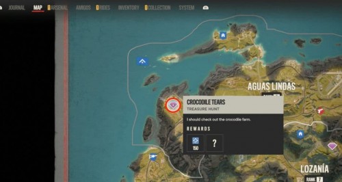 Найдите тайник под названием «Крокодильи слезы», спрятанный на западном побережье Агуас-Линдас. На скриншотах ниже показано его точное расположение.
