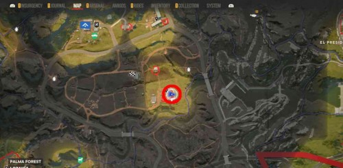 Вам нужно будет отыскать тайник под названием «Заначка», который спрятан в центральном складе FND, расположенном в восточной области Агуаса. Ниже показано нужное место.