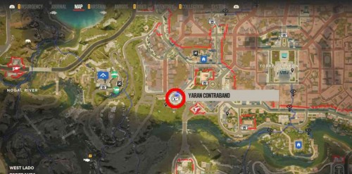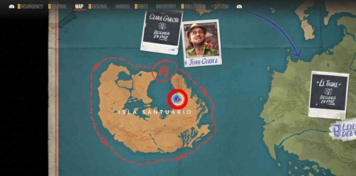 Направляйтесь в кинотеатр «Эль Райо», находящийся в восточной области Западного Ладо. Внутри военизированной зоны поднимитесь по боковой лестнице (рядом с ней будет значок в виде голубого глаза) на крышу, где и находится оружейный контейнер.
