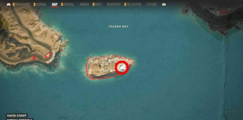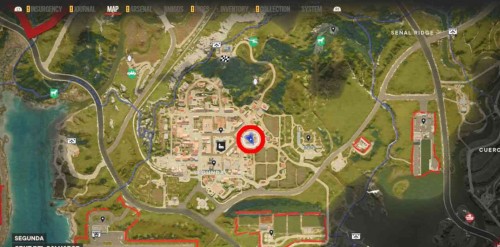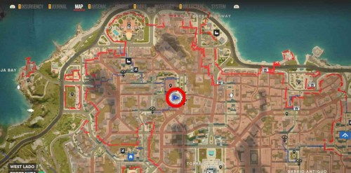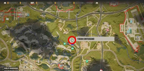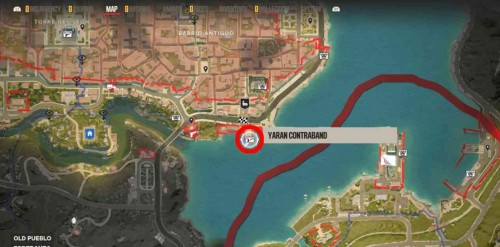 Отправляйтесь на нефтяную платформу GDP, расположенную в северо-западной области Агуас-Линдас. Тут находится база FND, состоящая из 4-х небольших нефтяных площадок. Вам необходимо будет нажать на красную кнопку, находящуюся на юго-западной нефтяной площадке (расположена внизу и слева на карте – 3-й скриншот).