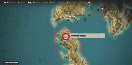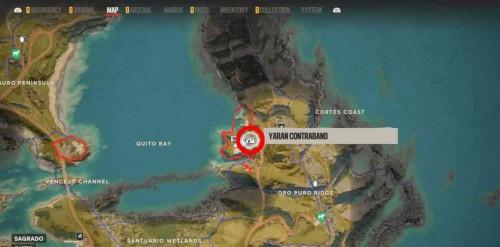 Вначале вам необходимо будет закончить Яранскую историю под названием «Кто хороший мальчик?», связанную со щенком Чоризо, а потом пройти задание «Собачий клад». Во время них песик даст вам Загадочный ключ, который можно использовать для открытия сундука с оружием, расположенного на небольшом острове Гав-Гав, находящемся в центральной области Кито. На скриншотах ниже показано точное место.