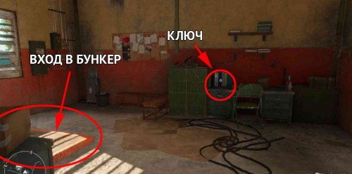 Вам предстоит обыскать склад боеприпасов FND, расположенный в западной области Венсехо. Спуститесь по лестнице внутри бункера (обведен красным кругом на 3-м изображении ниже). Ключ от бункера находится в той же комнате, что и лестница, с правой стороны.