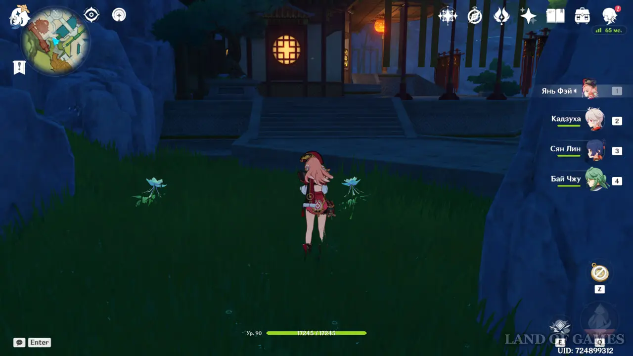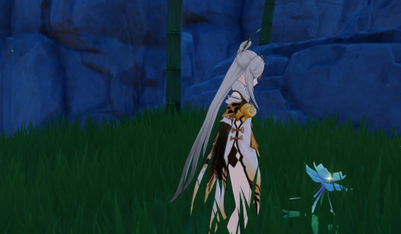 Этот цветок можно отыскать только в Ли Юэ в количестве всего 52 штук. Впрочем, глазурную лилию можно найти лишь в трех районах, что заметно упрощает ее сбор. Советуем вам фармить этот цветок в ночное время суток, так как именно тогда его бутон распускается, что упрощает поиски. Днем лилия находится в закрытом состоянии. На скриншоте ниже можно увидеть, как именно она выглядит ночью.