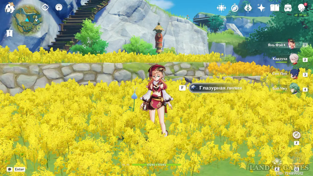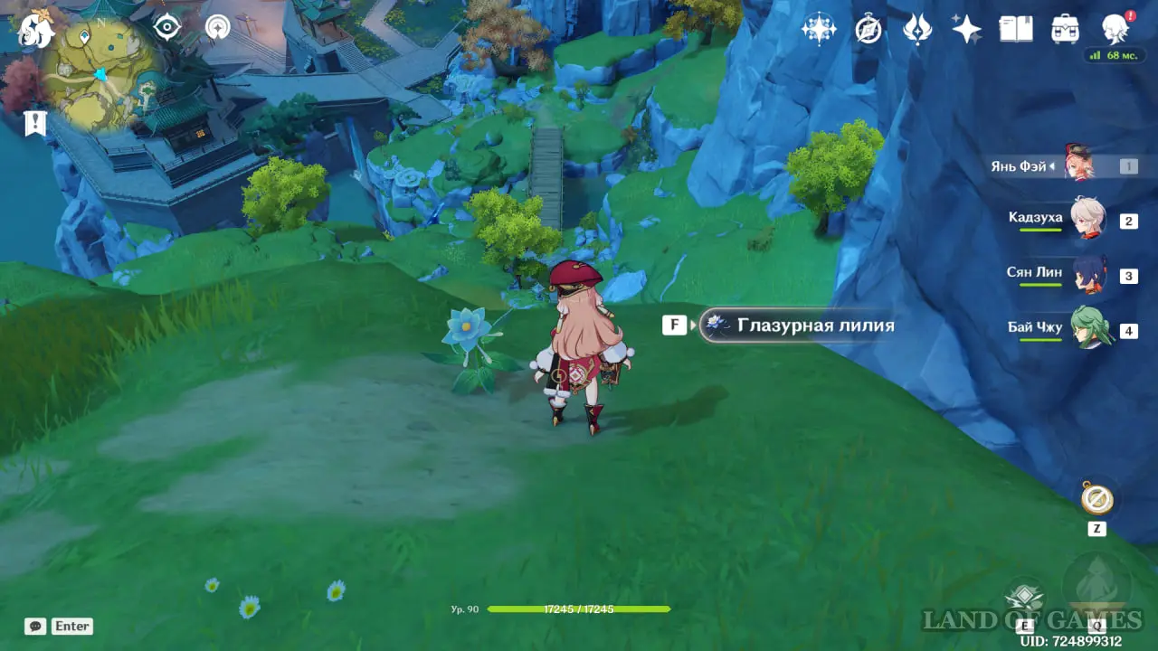 Приобрести эту местную диковинку можно у мельника по имени Мисс Бай, которую вы сможете найти в деревне Цинцэ. Ее местоположение показано на скриншотах ниже. Вот только она продает всего 3 глазурные лилии, причем каждая из них стоит 50 000 моры. Сразу скажем, что это не самое выгодное вложение средств в игре. Добавим, что ее ассортимент обновляется раз в неделю.