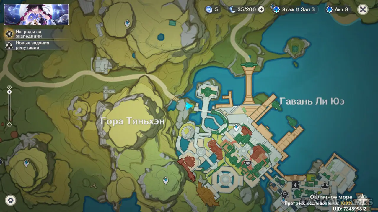 Первым делом телепортируйтесь к горе Сюаньлянь и спуститесь на северо-восток, ближе к воде. Одинокая лилия растет на небольшом камне.