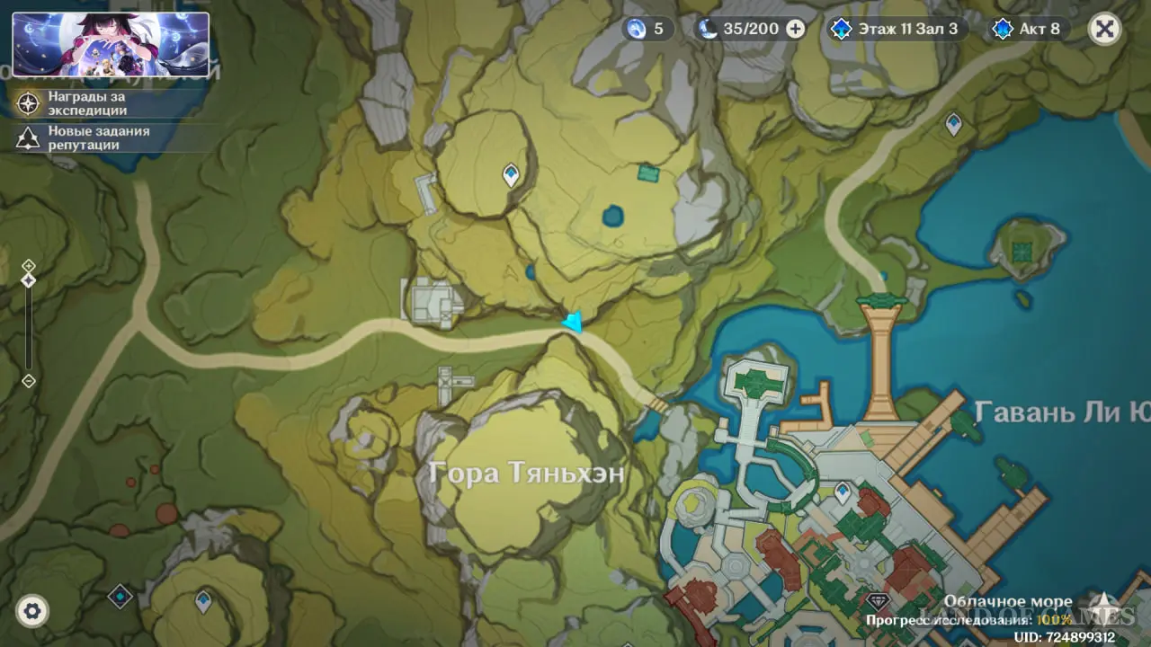 Последняя лилия в этом районе растет на возвышенности к северу от горы Тяньхэн — проще всего попасть к ней от ближайшего телепорта.